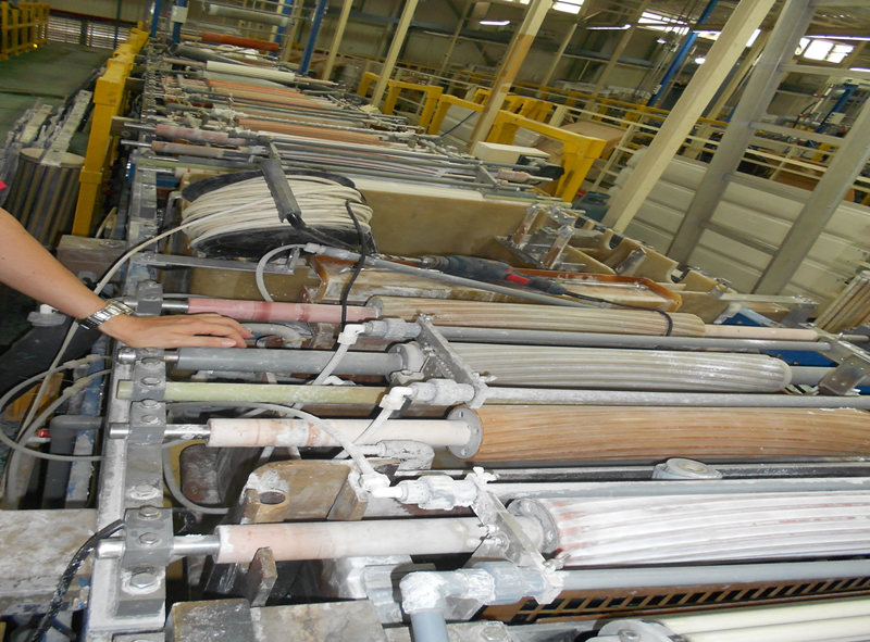 10. 應用背景:在電子工業領域中,高純度陽極氧化鋁箔的需求量近年來顯著增加。為了得到具有高電容率的的均勻氧化膜,需要在特別的電解液中把鋁箔進行陽析氧化。電流密度1000-5000A/平米。電流直接通過薄鋁箔是很困難的,需要在鋁箔兩旁安裝輔助陽極和輔助陰極,以不直接接觸形式向鋁箔通電。通常在電解液中含有有機物,有機化合物在陽極上被氧化分解,而污染了電解液,同時有機物吸附在電極表面上,使電極電位顯著升高而破壞了涂層,因此需要低氧過電位的涂層陽極,目前該工藝主要采用的是銥鉭陽極。