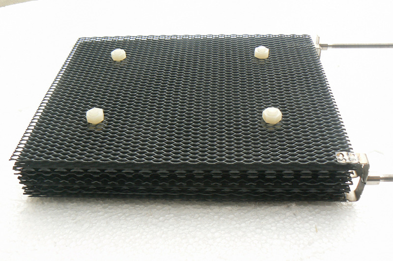 我公司主要針對(duì)此行業(yè),設(shè)計(jì)并研發(fā)了一種具有活化層的銥鉭陽(yáng)極板,并且也申請(qǐng)了實(shí)用新型專利,該陽(yáng)極在鈦基體上涂覆由錫和銻氧化物組成的活化層,一方面能使電解液難以滲透到鈦表面,氧原子或02-離子向鈦基體的擴(kuò)散也受到了阻擋,從而避免了Ti02的生成,同時(shí)也提高了銥鉭涂層的析氧過(guò)電位。主要在有機(jī)廢水處理中體現(xiàn)其獨(dú)特的優(yōu)越性,能使有機(jī)物直接在陽(yáng)極表面被氧化成CO2和水,也防止了原生態(tài)的氧原子進(jìn)入涂層內(nèi)部破壞涂層,從而增強(qiáng)陽(yáng)極使用壽命。